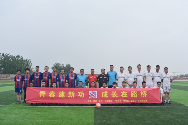 為加強分子公司間交流,促進公司“家”文化建設(shè), 5月4日,道路、路面兩家單位在合寧高速改擴建05標組織開展以“青春建新功 成長在路橋”為主題足球友誼賽。道路分公司黨總支副書記王秋華、總工程師鄧光文出席開幕式并與員工同場競技。