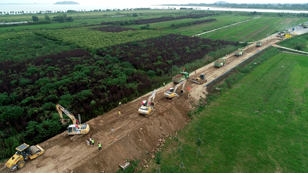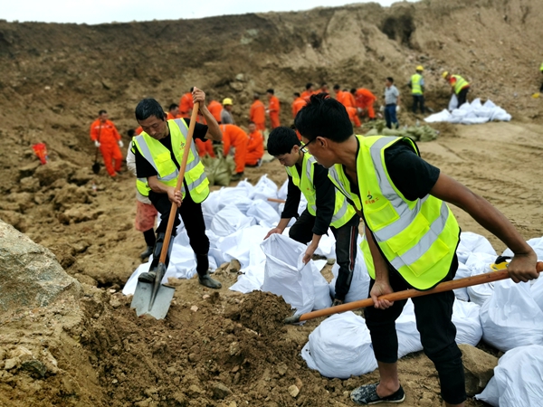 由安徽路橋市政分公司軌道交通4號線、引江濟(jì)淮新橋大道、徽州大道等項(xiàng)目組成的三支抗洪搶險(xiǎn)隊(duì),260多名職工在150多臺機(jī)械設(shè)備的配合下,在環(huán)湖大道杭埠河區(qū)域執(zhí)行筑壩固堤任務(wù),已連續(xù)作戰(zhàn)超30小時。目前,大壩被提升4.5米,填筑水穩(wěn)3440方,級配碎石8126.4方,風(fēng)化石5024方,搬運(yùn)沙袋12000余袋。