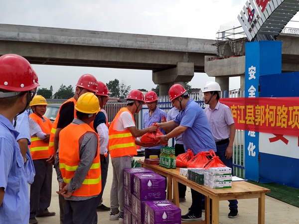 項(xiàng)目積極組織開(kāi)展“消除事故隱患,筑牢安全防線”主題安全月活動(dòng),組織員工和一線作業(yè)人員觀看安全微電影,學(xué)習(xí)安全防護(hù)常識(shí),提高安全防護(hù)意識(shí)。結(jié)合項(xiàng)目實(shí)際開(kāi)展交通傷害應(yīng)急演練,帶領(lǐng)一線作業(yè)人員學(xué)習(xí)交通傷害后的應(yīng)急操作,提高一線作業(yè)人員應(yīng)急知識(shí)儲(chǔ)備,提高應(yīng)急處置能力。高溫天氣來(lái)襲,項(xiàng)目每天向一線作業(yè)人員發(fā)放十滴水、藿香正氣液等防暑降溫藥品和綠豆、白糖、礦泉水等防暑降溫物資,保障安全生產(chǎn),為大干快上保駕護(hù)航。