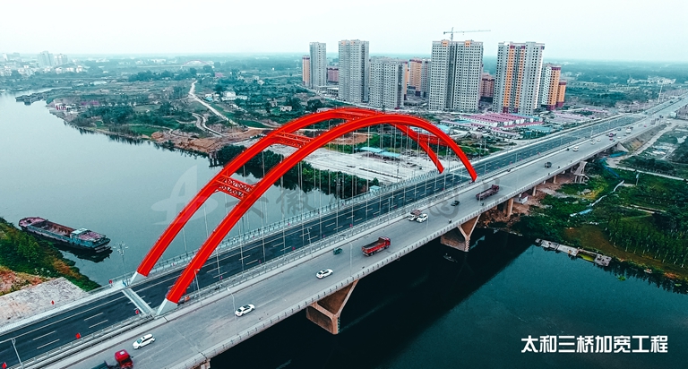 105國道(三角元至太和段)太和潁河三橋加寬工程于2015年8月開工,2017年7月順利交工。橋梁全長576.53米,主橋全寬23.2米,引橋全寬19.5m,主跨為152米下承式鋼管砼系桿拱橋,引橋?yàn)?0m箱梁結(jié)構(gòu),下部結(jié)構(gòu)采用柱式墩,鉆孔灌注樁基礎(chǔ),設(shè)計(jì)荷載等級(jí)為公路-I級(jí)。該項(xiàng)目建成通車以來,有效改善了太和縣城潁河兩岸的交通狀況,對(duì)加快城鎮(zhèn)化建設(shè)起到了重要作用。