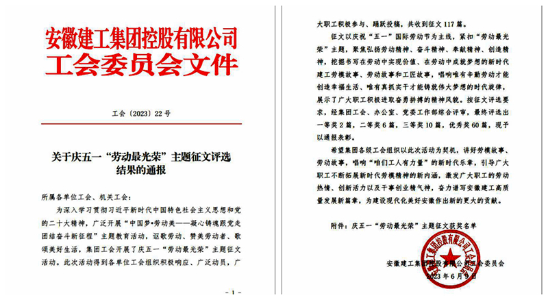 安徽路橋公司在集團(tuán)慶五一“勞動(dòng)最光榮”主題征文活動(dòng)中喜獲佳績(jī)