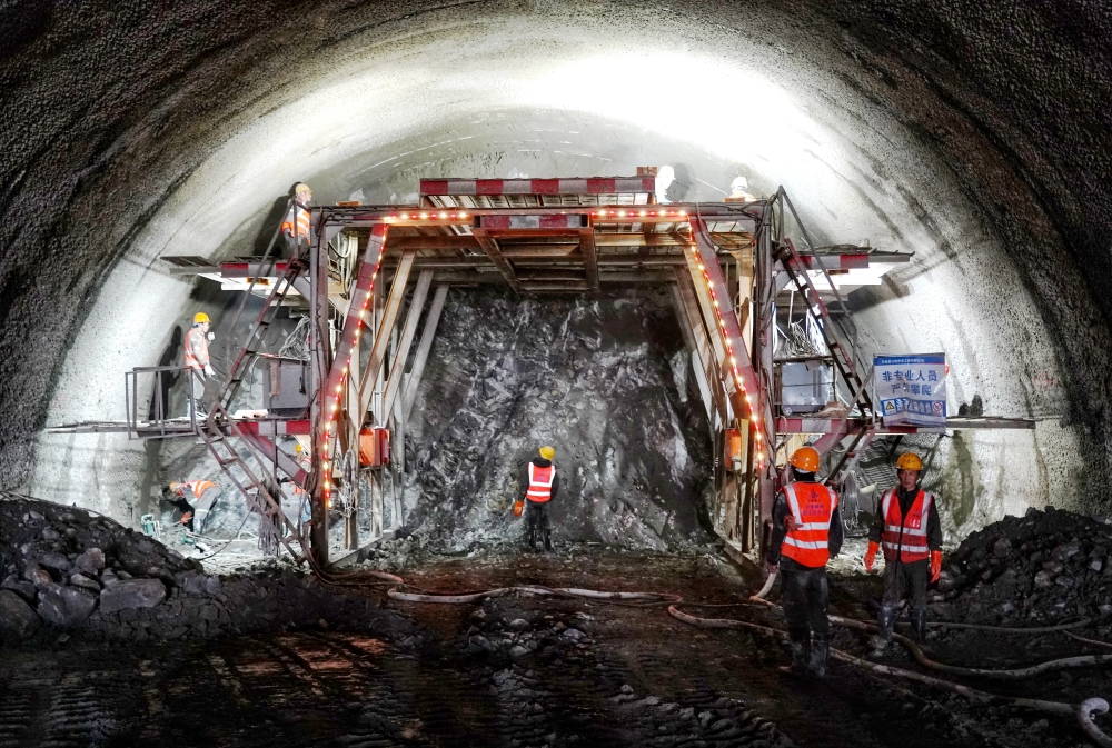 當(dāng)天清晨,薄霧如輕紗般籠罩著大地,江梓山山腰的隧道口處,已是一片熱火朝天的繁忙景象。巨大的機(jī)械臂在晨光中揮舞,在施工現(xiàn)場劃出一道道剛勁有力的弧線。工人們身著醒目的安全服,手持風(fēng)槍鉆,熟練而專注地操作著。隨著爆破孔眼逐個成孔以及炸藥裝填工作穩(wěn)步推進(jìn),爆破前的準(zhǔn)備工作逐漸進(jìn)入尾聲。