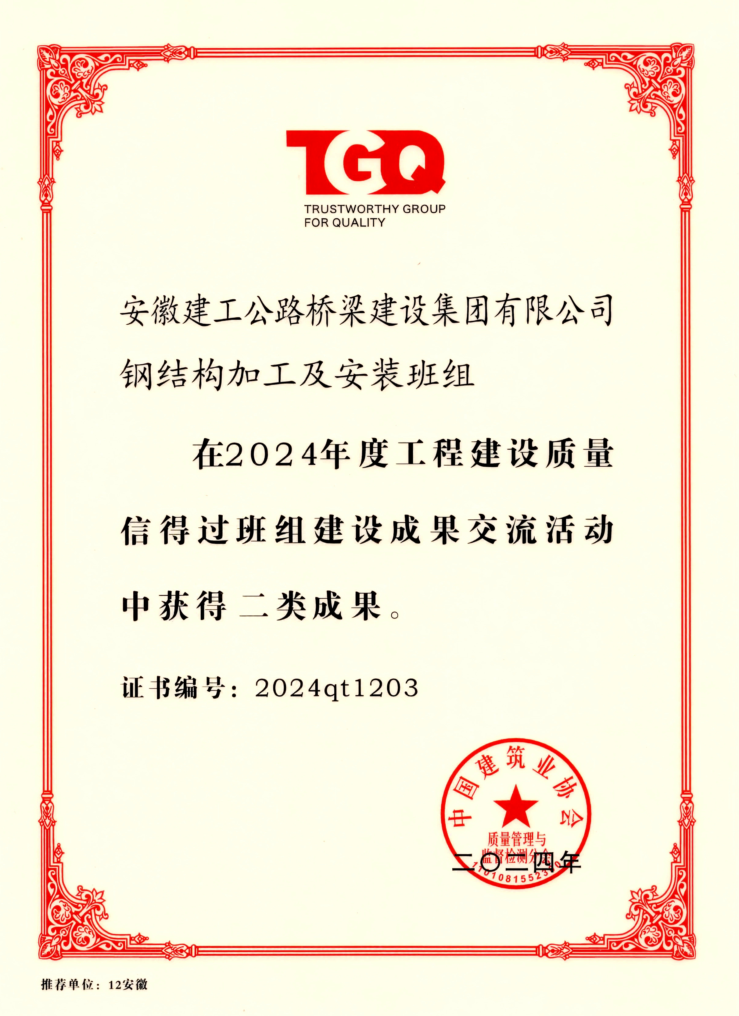 近日,中國(guó)建筑業(yè)協(xié)會(huì)質(zhì)量管理與監(jiān)督檢測(cè)分會(huì)公布了2024年工程建設(shè)質(zhì)量信得過班組建設(shè)成果名單,公司鋼結(jié)構(gòu)加工及安裝班組從416個(gè)成果中脫穎而出,榮獲信得過班組二類成果。