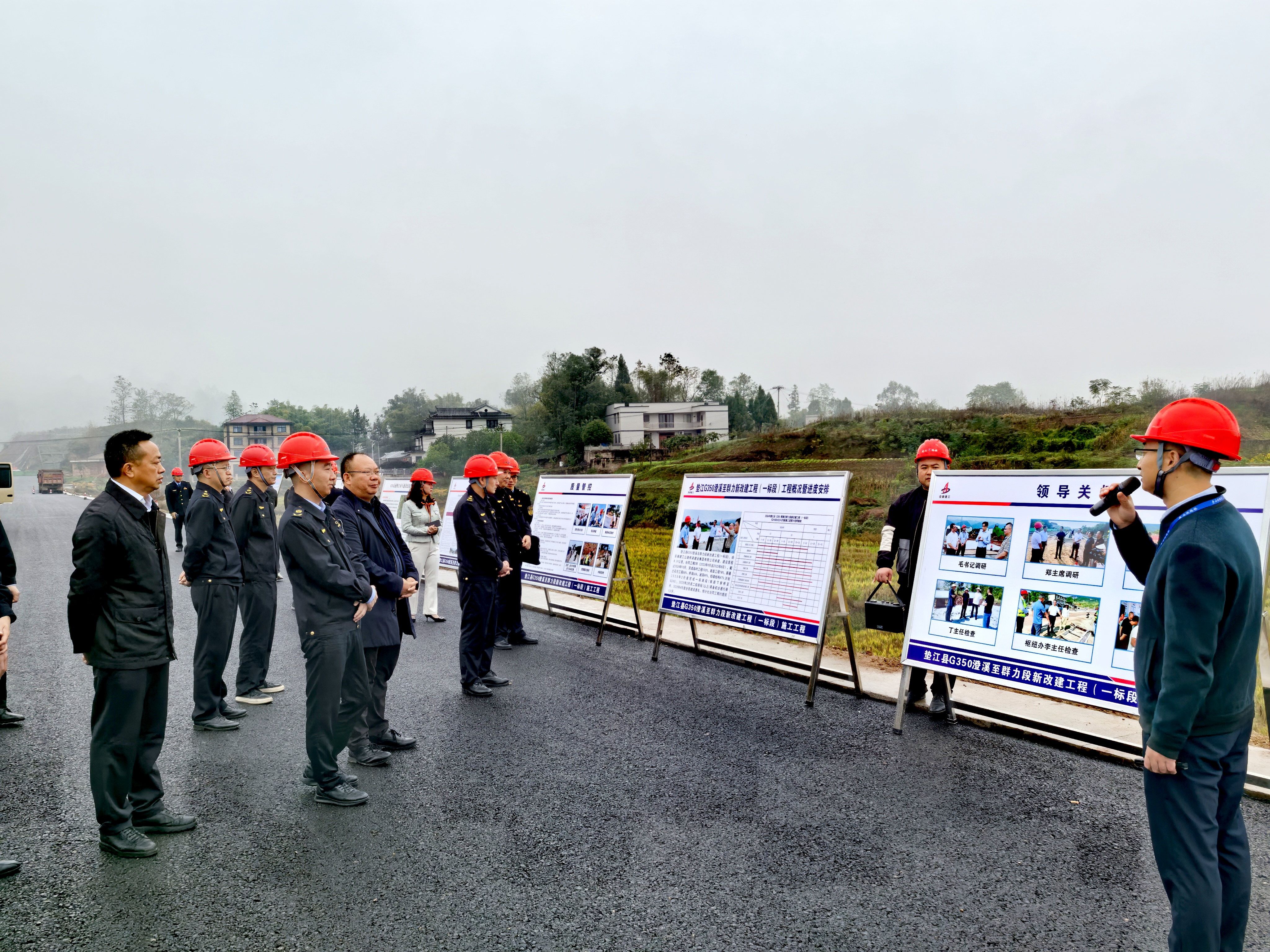 重慶市交通執(zhí)法總隊(duì)工程質(zhì)監(jiān)支隊(duì)觀摩團(tuán)到墊江G350項(xiàng)目觀摩