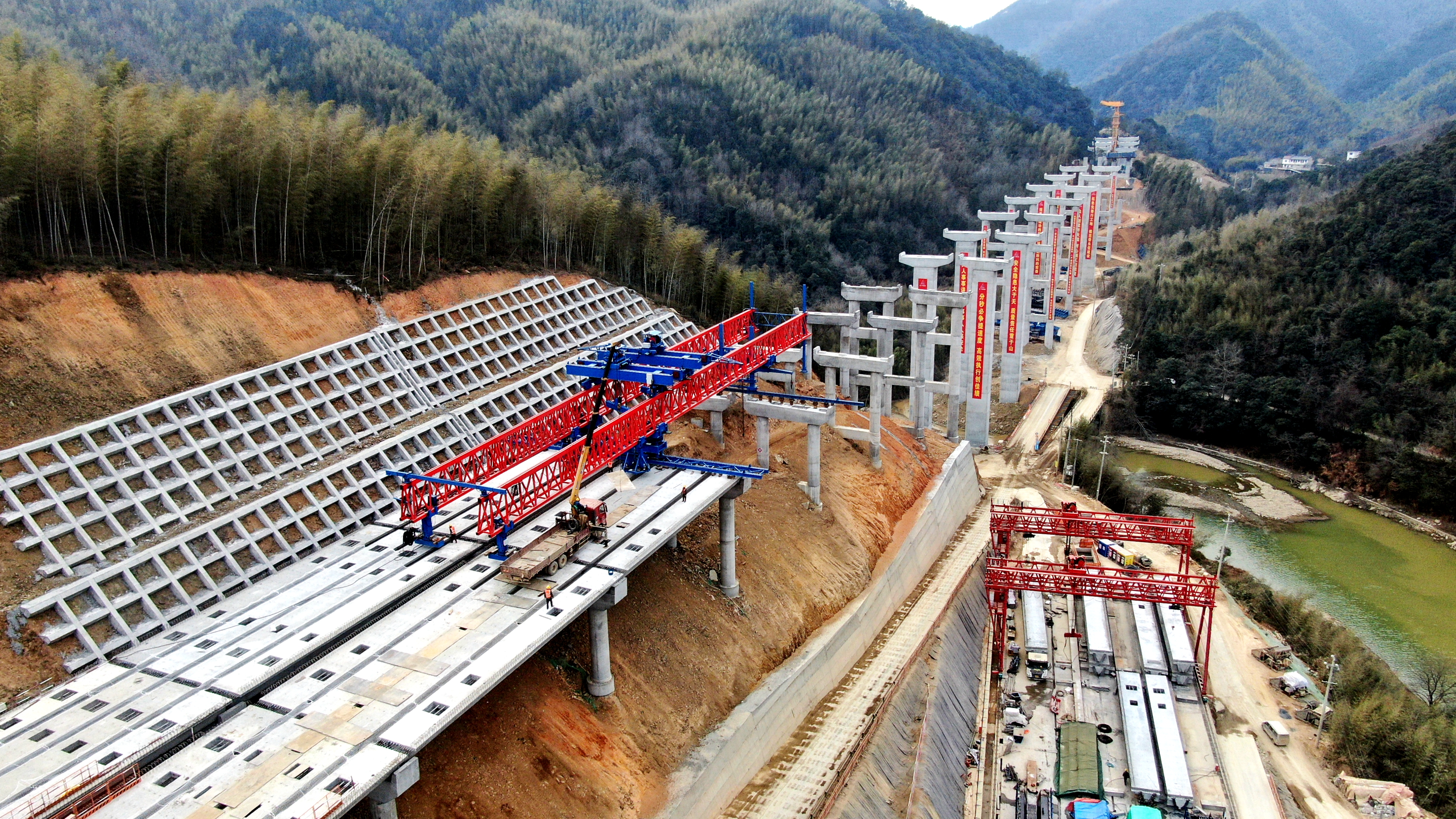 近80名施工人員投入緊張有序的梁板預(yù)制及架設(shè)、隧道開挖施工中,全力推進(jìn)工程建設(shè),沖刺蛇年“開門紅”。