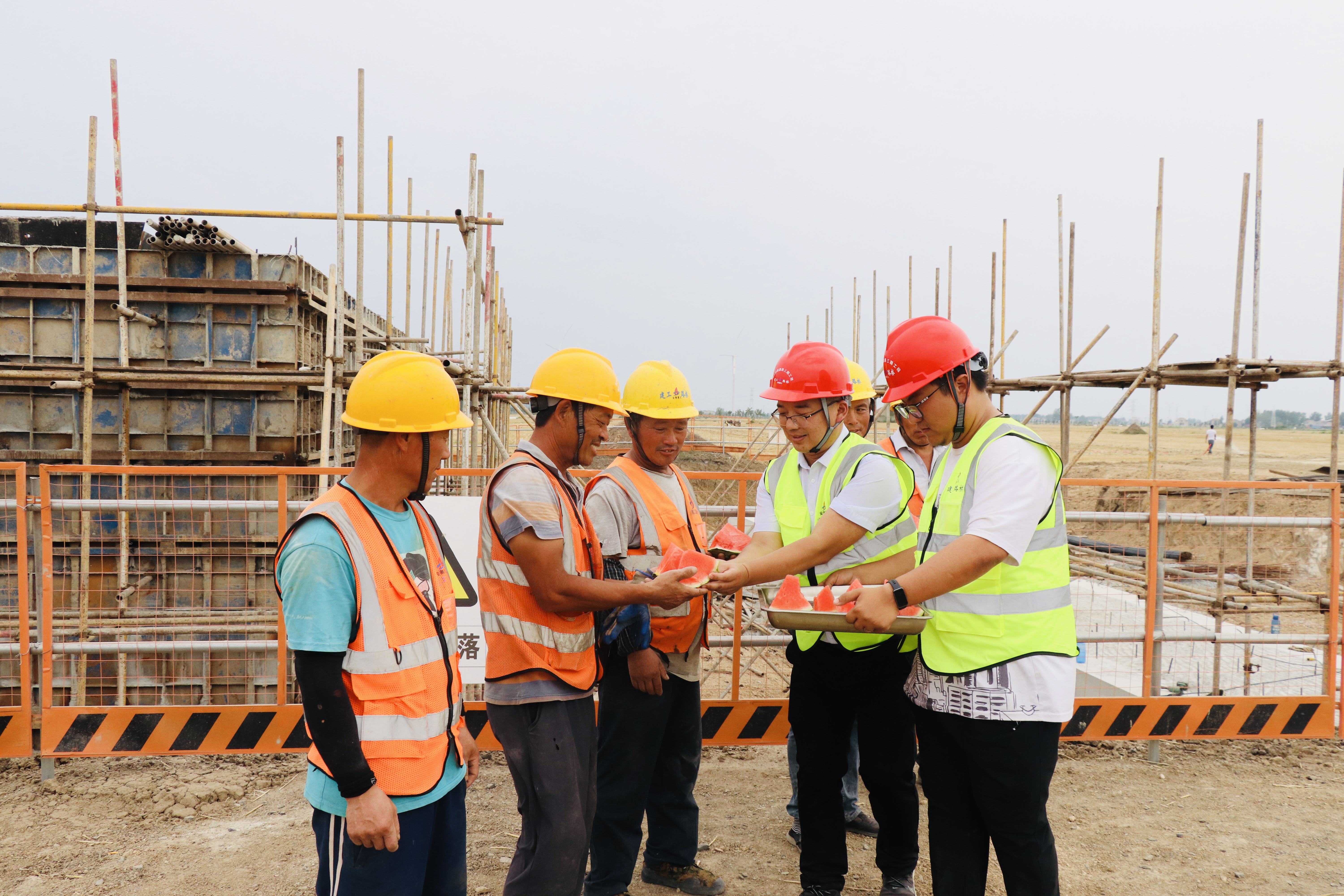 “自5月份開始,項目就陸續(xù)開展防暑降溫措施培訓和中暑應急救援演練,提前為各勞務隊伍配備充足的防暑降溫藥品,并在每日安全巡查時為一線工人發(fā)放西瓜、礦泉水、綠豆湯等一系列防暑降溫用品,時刻關注工人身體狀況,全力確保高溫下施工安全與效率?!表椖堪踩h(huán)保部部長方巖說。