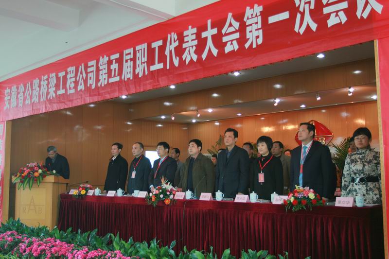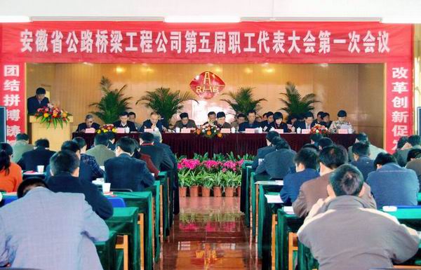8:45,在莊嚴(yán)的國(guó)歌聲中,第五屆職工代表大會(huì)第一次會(huì)議正式開(kāi)幕。公司總經(jīng)理汪衛(wèi)東向大會(huì)作了題為《統(tǒng)一思想 堅(jiān)定信心 為實(shí)現(xiàn)安徽路橋的新崛起而奮斗》的工作報(bào)告。汪總在報(bào)告中指出,這次會(huì)議,是在當(dāng)前國(guó)家擴(kuò)大內(nèi)需、加大基礎(chǔ)設(shè)施建設(shè)的特殊環(huán)境下,是在集團(tuán)公司對(duì)當(dāng)前經(jīng)濟(jì)形勢(shì)科學(xué)研判和正確部署下,是在路橋公司謀求新崛起的關(guān)鍵時(shí)刻召開(kāi)的一次十分重要的會(huì)議。