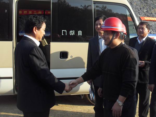 黃省長首先在施工現(xiàn)場(chǎng)聽取了績黃高速項(xiàng)目辦主任方昱對(duì)于工程建設(shè)情況的匯報(bào)。聽完匯報(bào)后,黃省長對(duì)公司和項(xiàng)目部的工作給予充分肯定和高度評(píng)價(jià)。他說,“省路橋公司是本省施工的龍頭企業(yè),代表本省的形象,希望你們?cè)俳釉賲?,繼續(xù)做好規(guī)范化施工,高效管理,抓住當(dāng)前機(jī)遇,努力打造優(yōu)質(zhì)工程,不斷提升企業(yè)形象,開辟新的市場(chǎng),繼續(xù)做大做強(qiáng)?!蓖艨偙響B(tài),“省路橋公司在黃省長的關(guān)懷下,近年來企業(yè)改制改革方面取得了一定成效,企業(yè)取得了巨大發(fā)展,我們將繼續(xù)做好施工規(guī)范化、精細(xì)化管理,在省領(lǐng)導(dǎo)的關(guān)心與支持下,我們一定會(huì)抓住機(jī)遇、迎接挑戰(zhàn),把企業(yè)做大做強(qiáng)”。