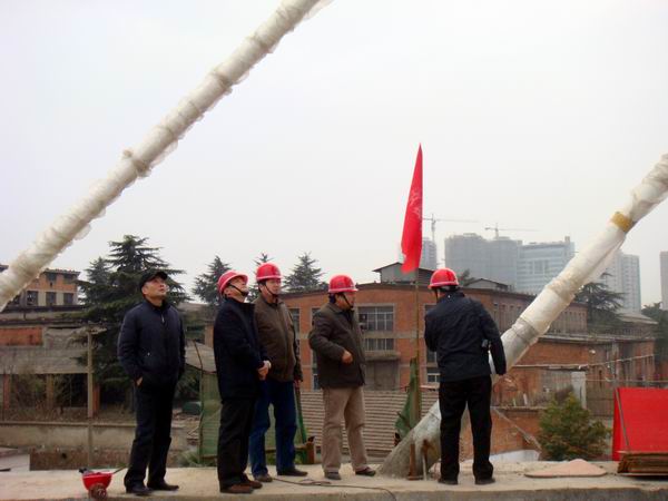 戴總一行參觀了大橋南岸主橋施工現(xiàn)場。在聽取了項目部江仲明經(jīng)理對前期工作和當(dāng)前施工進(jìn)展情況的匯報后,戴總對我部工作給予了高度評價,同時提出了更高的要求,希望我部繼續(xù)努力,再上新臺階。隨后,戴總一行還登上了主橋橋面,實地察看了正在緊張進(jìn)行的主橋前支點(diǎn)掛藍(lán)施工,親切慰問了冒著嚴(yán)寒戰(zhàn)斗在一線的現(xiàn)場施工工人和技術(shù)人員,并就主橋完成后如何拆除前支點(diǎn)掛藍(lán)提出了指導(dǎo)性的方案。