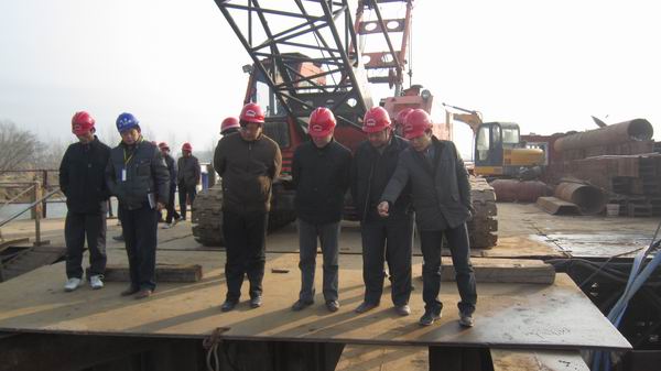 殷書記一行先后到箱梁預(yù)制場(chǎng)、鋼筋加工場(chǎng)、主墩鋼圍堰進(jìn)行了現(xiàn)場(chǎng)查看,并聽取了該項(xiàng)目負(fù)責(zé)人關(guān)于項(xiàng)目施工管理情況的匯報(bào)。在座談會(huì)上,殷書記對(duì)項(xiàng)目部前期取得的成績(jī)給予了充分肯定,也指出了存在的不足。周科長(zhǎng)就實(shí)地查看的情況進(jìn)行了總結(jié),指出從目前檢查情況來(lái)看,路基11標(biāo)在施工質(zhì)量上是下了功夫的,并鼓勵(lì)大家再接再厲,安全、優(yōu)質(zhì)、高效地完成這座特大橋的建設(shè)。