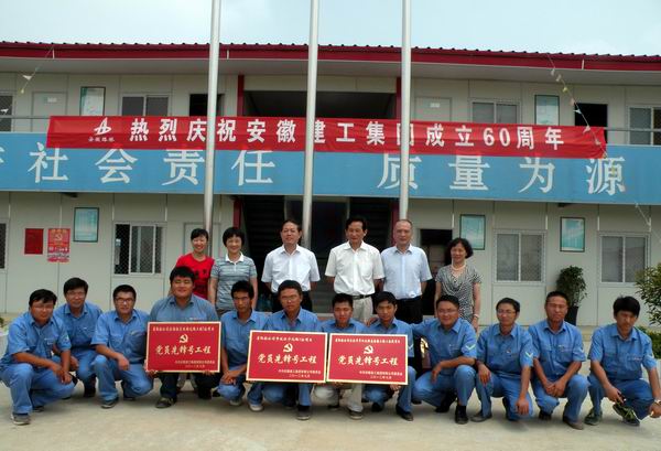 10點左右,李書記、牛書記一行來到項目會議室舉行“黨員先鋒號工程”授牌儀式。會上,公司、國內(nèi)公司及市政分公司分別就爭創(chuàng)“黨員先鋒號工程”情況做了具體匯報。會上,李書記和牛書記分別作了重要講話。李書記就項目“黨員先鋒號工程”創(chuàng)建情況談了三點感受:一是創(chuàng)建工作務(wù)實,內(nèi)容具體;二是創(chuàng)建工作主題突出,有自己的特色;三是創(chuàng)建隊伍有生機、有朝氣。就“黨員先鋒號工程”創(chuàng)建下步工作,李書記提出三點要求:一是創(chuàng)建工作要圍繞生產(chǎn)中心進行;二是要拓寬創(chuàng)建活動范圍,要逐步將活動延伸到合作隊伍和農(nóng)民工中;三是創(chuàng)建工作要建立長效機制。牛書記指出公司市政項目“黨員先鋒號工程”創(chuàng)建工作開展的很好,很有特色,對項目在人文關(guān)懷方面的工作給予了充分肯定,對項目員工表現(xiàn)出的朝氣表示欣賞,并對安全生產(chǎn)、職工生活等方面工作做提出了具體要求。