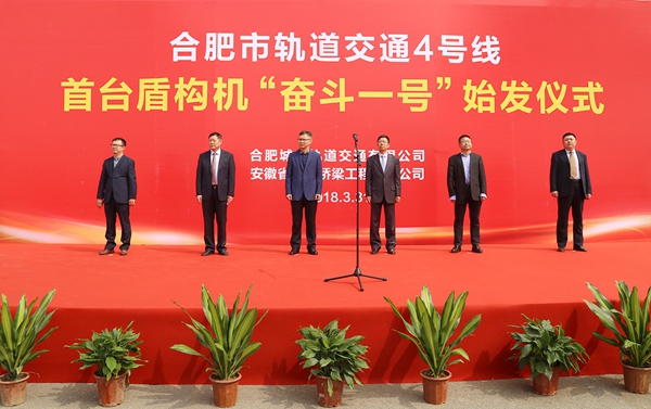 陽(yáng)春三月生機(jī)勃發(fā),奮斗一號(hào)掘進(jìn)始發(fā)。3月31日上午,公司首臺(tái)盾構(gòu)機(jī)“奮斗一號(hào)”在軌道交通4號(hào)線(xiàn)1標(biāo)長(zhǎng)寧大道站順利始發(fā),標(biāo)志著合肥軌道交通4號(hào)線(xiàn)正式進(jìn)入盾構(gòu)施工階段。合肥市軌道公司總經(jīng)理羅斌,安徽建工集團(tuán)副總經(jīng)理王厚良,公司董事長(zhǎng)、黨委書(shū)記、總經(jīng)理孫學(xué)軍等領(lǐng)導(dǎo)和參建單位代表出席始發(fā)儀式。10時(shí)16分,羅斌宣布“奮斗一號(hào)”正式始發(fā)。儀式結(jié)束后,與會(huì)領(lǐng)導(dǎo)與專(zhuān)家深入始發(fā)現(xiàn)場(chǎng)、管片存放區(qū)檢查指導(dǎo)。