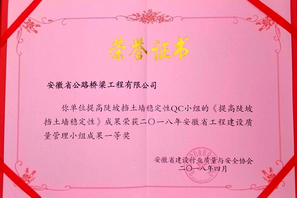 近期,由安徽省建設行業(yè)質量與安全協(xié)會主辦的安徽省建筑業(yè)企業(yè)2018年QC小組活動成果交流會在合肥順利召開,358項成果參加了發(fā)布和交流。道路分公司展示的3項QC成果榮獲兩項一等獎和一項二等獎。