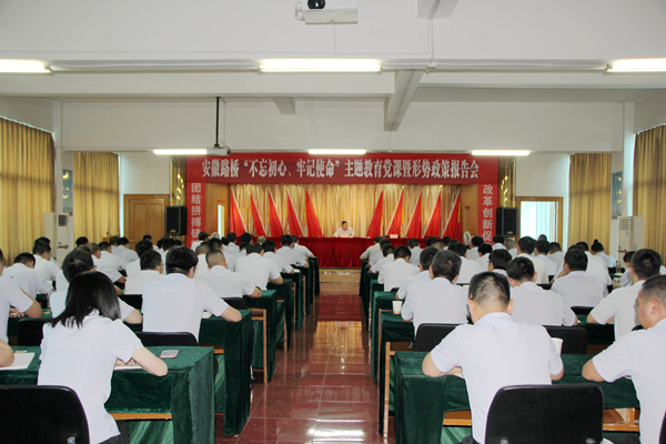 為進(jìn)一步推深做實(shí)“不忘初心、牢記使命”主題教育,按照公司主題教育方案部署,8月2日下午,股份公司副總經(jīng)理、公司黨委書記、董事長孫學(xué)軍以“守初心 擔(dān)使命 找差距 抓落實(shí)——用習(xí)近平新時代中國特色社會主義思想指導(dǎo)打造品質(zhì)路橋卓越路橋”為主題,作了一場主題教育黨課暨形勢政策報(bào)告會。集團(tuán)主題教育第四指導(dǎo)組副組長王永來到會指導(dǎo)。公司領(lǐng)導(dǎo),中層干部,在肥項(xiàng)目經(jīng)理、黨支部負(fù)責(zé)人,機(jī)關(guān)全體黨員100余人參加了報(bào)告會。
