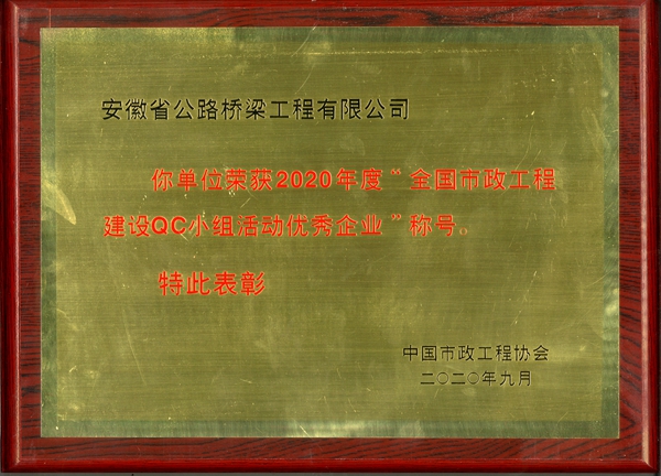 近日,中國市政工程協(xié)會組織召開2020年度全國市政工程建設(shè)優(yōu)秀QC小組成果發(fā)布會。大會總結(jié)交流了2019年市政工程建設(shè)QC小組活動經(jīng)驗,評選表彰了QC小組活動優(yōu)秀企業(yè)。公司榮獲全國市政工程建設(shè)QC小組活動優(yōu)秀企業(yè)。