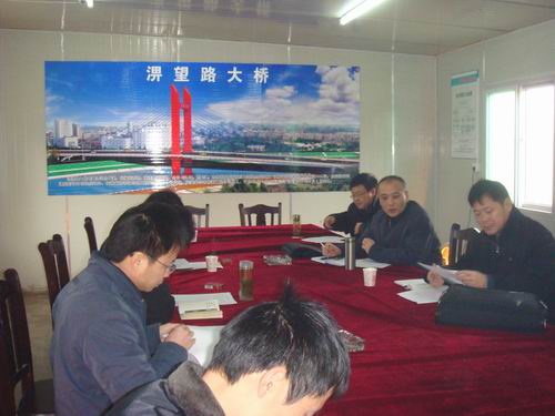 3月5日上午,公司副總經(jīng)理孫學(xué)軍、總工程師彭申凱、副總工程師黃維樹、錢三水、崔林釗等專家領(lǐng)導(dǎo)一行蒞臨淠望路大橋項(xiàng)目部考察指導(dǎo)工作,在實(shí)地察看施工現(xiàn)場后,在項(xiàng)目部會(huì)議室就制訂的《六安市淠望路大橋初步施工方案》進(jìn)行了研討,旨在征求專家和有關(guān)單位意見,進(jìn)一步修改完善施工方案。