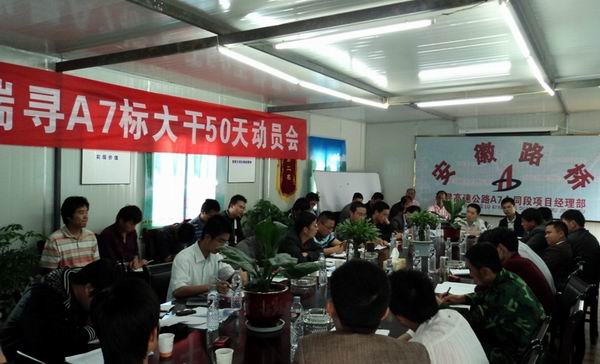 會(huì)議首先下達(dá)了大干50天的施工任務(wù)目標(biāo),并公布了相應(yīng)獎(jiǎng)懲措施,要求各施工班組務(wù)必按質(zhì)按時(shí)完成施工任務(wù)。隨后,RA3駐地辦駐地工程師吳勝和A7監(jiān)理組組長(zhǎng)萬軍分別對(duì)大干50天作出指示。最后,項(xiàng)目經(jīng)理劉大雷從工程進(jìn)度、質(zhì)量和安全等方面進(jìn)行了總結(jié)并提出要求,強(qiáng)調(diào)了施工過程中安全、質(zhì)量、進(jìn)度的重要性,三者要同時(shí)抓,要加強(qiáng)環(huán)保與文明施工,建立一個(gè)和諧的施工環(huán)境。