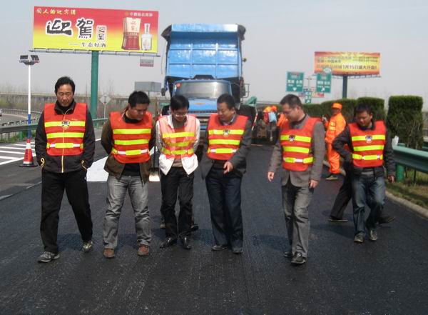 曹部長一行首先來到我部施工現(xiàn)場,視察了施工段原路面處理及瀝青攤鋪壓實全過程。并詳細(xì)詢問了混合料的攤鋪溫度及壓實工藝。視察過程中,曹部長強調(diào):安全是施工工作的排頭兵,在保障施工質(zhì)量和進度的同時一定要加大安全工作的投入力度。正在施工的蕪馬互通區(qū)由于車流量較大,我部及時采取了半封閉半通行的施工方案。施工過程中,我部專職安全員一刻不離施工現(xiàn)場,全程監(jiān)督安全工作。在大家的共同努力下,施工秩序井然、車輛通行順暢有序。曹部長一行對此表示滿意。緊接著,曹部長一行又來到我部施工后場,對我部備料及試驗檢測環(huán)節(jié)進行了視察。曹部長說:備料及試驗檢測環(huán)節(jié)是我們施工工作得以順利開展的前提和保障。我們一定要從細(xì)微處著手,緊扣各個環(huán)節(jié),把好質(zhì)量關(guān)。我部項目經(jīng)理薛斌表示:我部一定恪守各項管理規(guī)范,保證蕪宣高速公路瀝青路面養(yǎng)護工程按時、按質(zhì)、按量地完成施工。