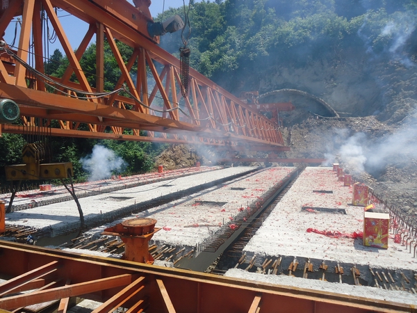 寧績07標(biāo)成功架設(shè)最后一片箱梁 發(fā)布時間:2013年06月03日 來源:寧績07標(biāo) 發(fā)布人: 作者:衛(wèi)驥午 瀏覽:2829次 6月3日上午10時58分,伴隨著一陣陣響徹山谷的鞭炮聲,寧績07標(biāo)項目最后一片箱梁平穩(wěn)準(zhǔn)確地架設(shè)到位。至此該項目箱梁全部架設(shè)完成。