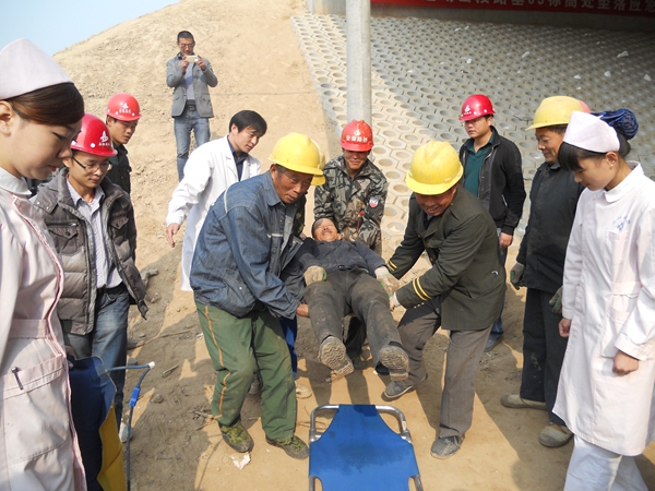 演練開始,中山醫(yī)院外科何主任在項目部會議室給參演人員講解了一些外科傷害常識及應急救援措施,外科醫(yī)生朱醫(yī)生在施工現(xiàn)場向大家模擬了救援方法、動作,并講解了注意事項。本次演練在項目部各部門及橋梁施工隊的積極參與和配合下取得了圓滿成功,提高了該項目部應急響應能力。