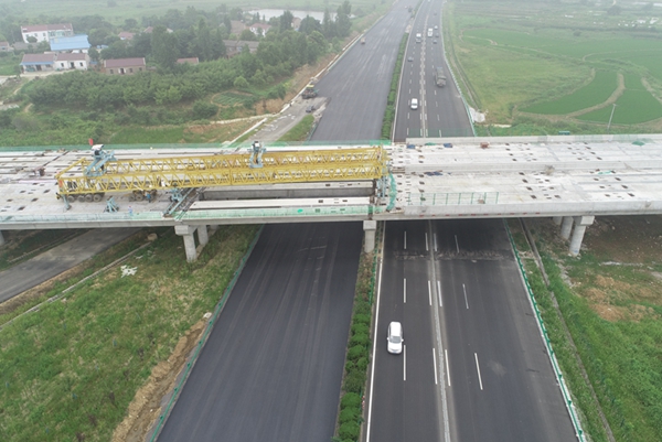 湯池大道上跨京臺高速分離立交橋順利合龍