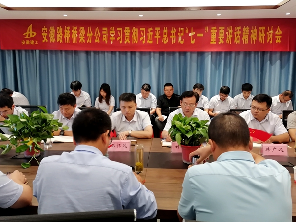 7月3日,橋梁分公司黨總支組織召開學(xué)習(xí)習(xí)近平總書記在慶祝中國共產(chǎn)黨成立100周年大會(huì)上的重要講話精神研討會(huì)。分公司領(lǐng)導(dǎo)班子、職能部門負(fù)責(zé)人,以及所屬項(xiàng)目領(lǐng)導(dǎo)班子成員參加,分公司黨總支書記劉振嶺主持會(huì)議。