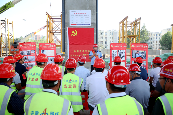 7月21日下午,合肥市總工會(huì)到暢通二環(huán)(西南環(huán))項(xiàng)目舉辦黨史學(xué)習(xí)教育“進(jìn)工地”活動(dòng),全國五一勞動(dòng)獎(jiǎng)?wù)芦@得者夏力為30多名工友作主題宣講。