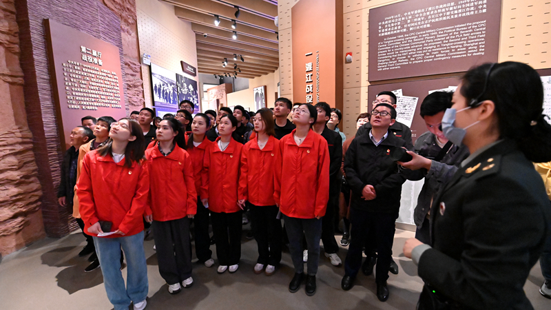 “與黨同心,黨旗所指就是團旗所向;與企同心,交通強國就是前進(jìn)號角……”勝利塔下,青年們面向團旗,發(fā)出激昂高亢的誓言,表達(dá)對黨忠誠的決心,對公司高質(zhì)量發(fā)展的信心。在展館內(nèi),青年們緊跟講解員的步伐,在一幅幅歷史照片、一件件陳列文物中重溫渡江戰(zhàn)役那段波瀾壯闊的革命歷史,學(xué)習(xí)革命先烈們的英勇事跡,并在紀(jì)念館大廳“勝利之師”雕像下重溫了入團誓詞。