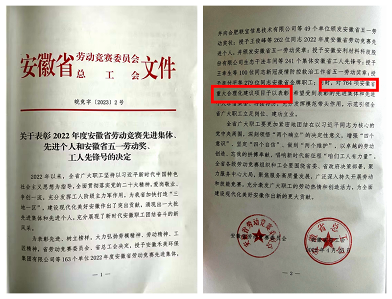 近日,安徽省總工會2022年度重大合理化建議評選活動結(jié)果公布,公司43項成果獲省重大合理化建議,為公司五年來獲此榮譽之和,是安徽建工集團2022年度獲省級合理化建議最多的二級單位。