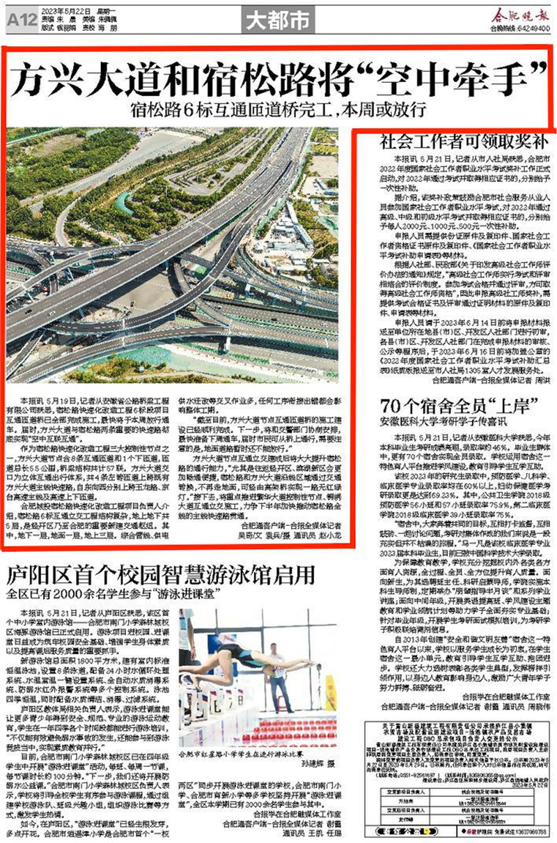 近日,合肥新聞聯(lián)播、《合肥晚報》聚焦宿松路項目建設,深入報道項目當前建設情況。