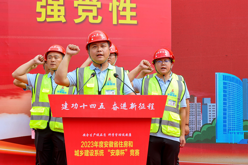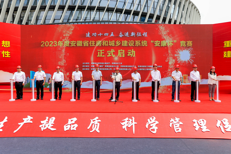 6月6日,在全國(guó)上下深入開展全國(guó)第22個(gè)“安全生產(chǎn)月"活動(dòng)之際,由安徽省住房和城鄉(xiāng)建設(shè)廳、安徽省總工會(huì)主辦,安徽省“安康杯”競(jìng)賽組委會(huì)辦公室、安徽省建設(shè)建材工會(huì)、安徽省建設(shè)工程質(zhì)量與安全協(xié)會(huì)承辦,安徽建工集團(tuán)控股有限公司協(xié)辦的主題為“安全生產(chǎn)提品質(zhì) 科學(xué)管理促安康”的2023年度安徽省住房和城鄉(xiāng)建設(shè)系統(tǒng)“安康杯”競(jìng)賽啟動(dòng)儀式在安徽路橋肥西縣桃花科創(chuàng)園EPC項(xiàng)目隆重舉行。