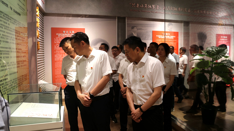 在大包干紀(jì)念館,大家認(rèn)真觀看圖文資料和原景復(fù)原模型,深入了解小崗村掀起中國農(nóng)村改革序幕的歷程,深切感受改革開放四十多年來小崗村發(fā)生的翻天覆地變化,進(jìn)一步感悟了“改革創(chuàng)新、敢為人先”的小崗精神。在沈浩同志先進(jìn)事跡陳列館,大家仔細(xì)觀看了沈浩同志在小崗村工作和生活過程中留下的文字、圖片和實(shí)物資料,深入了解了沈浩同志“兩任村干部瀝血嘔心帶領(lǐng)一方求發(fā)展,六載離家鞠躬盡瘁引導(dǎo)萬民奔小康”的感人事跡,真切感受到沈浩同志扎根基層、銳意進(jìn)取、一心為民、公而忘私的精神品質(zhì)。在陳列館南廣場,全體黨員重溫了入黨誓詞。