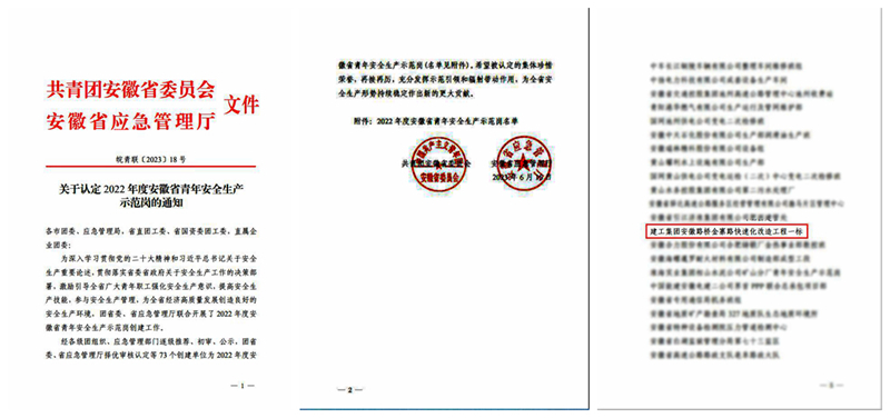 公司重點項目獲評“2022年度安徽省青年安全生產(chǎn)示范崗”