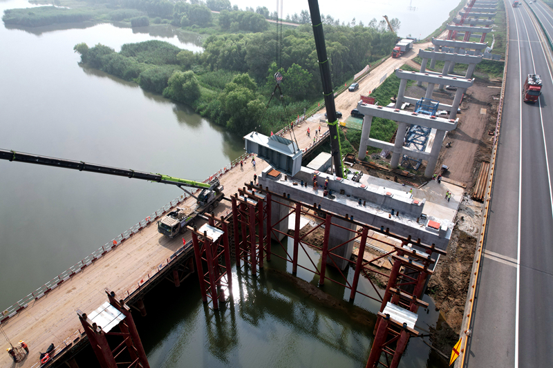 7月1日上午9時(shí)46分,伴隨著施工現(xiàn)場(chǎng)機(jī)械的轟鳴聲,安徽路橋公司承建的G36寧洛高速蚌明改擴(kuò)建01標(biāo)項(xiàng)目首片鋼箱梁順利架設(shè),這也是G36寧洛高速蚌明改擴(kuò)建工程全線架設(shè)的首片鋼箱梁。這是繼項(xiàng)目完成G36寧洛高速蚌明改擴(kuò)建工程首座拼寬橋預(yù)制空心板梁架設(shè)、首片箱梁架設(shè)、首座上跨橋拆除等之后的又一重大節(jié)點(diǎn)性工程,為項(xiàng)目進(jìn)一步掀起大干熱潮吹響奮戰(zhàn)集結(jié)號(hào)。