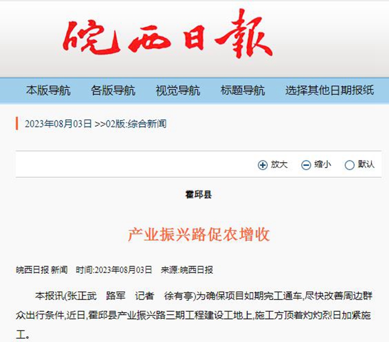 【名媒聚焦】皖西日?qǐng)?bào):安徽路橋產(chǎn)業(yè)振興路促農(nóng)增收