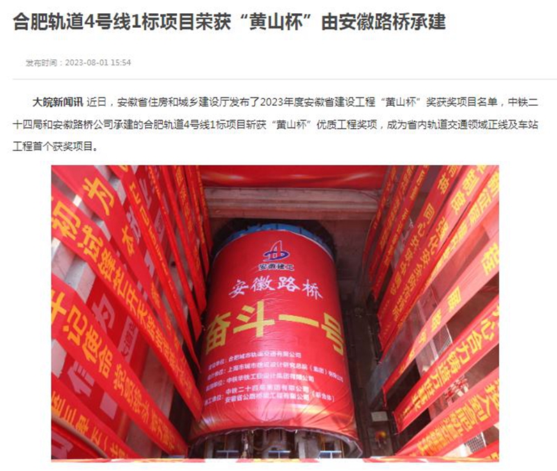 近日,安徽省住房和城鄉(xiāng)建設(shè)廳發(fā)布了2023年度安徽省建設(shè)工程“黃山杯”獎(jiǎng)獲獎(jiǎng)項(xiàng)目名單,中鐵二十四局和安徽路橋公司承建的合肥軌道4號(hào)線1標(biāo)項(xiàng)目斬獲“黃山杯”優(yōu)質(zhì)工程獎(jiǎng)項(xiàng),成為省內(nèi)軌道交通領(lǐng)域正線及車站工程首個(gè)獲獎(jiǎng)項(xiàng)目。