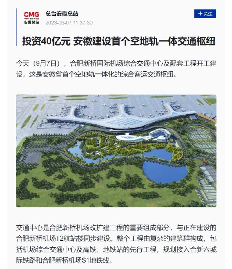 【名媒聚焦】央視新聞、人民日報等國家級主流媒體聚焦安徽路橋合肥新橋機(jī)場綜合交通項目建設(shè)
