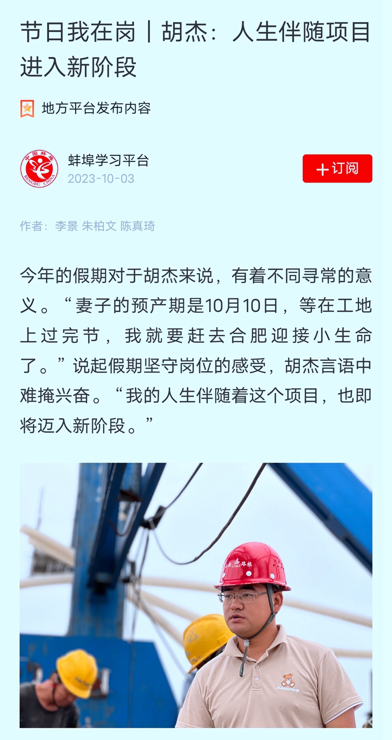 【名媒聚焦】學習強國、安徽日報等多家省市級主流媒體聚焦公司兩節(jié)期間項目建設情況