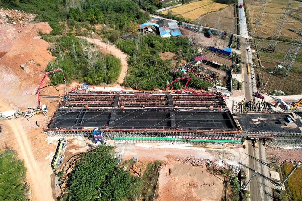 工程建設(shè)制勝在關(guān)鍵點(diǎn),項(xiàng)目部始終堅(jiān)持把關(guān)鍵節(jié)點(diǎn)工程攻堅(jiān)作為“頭號(hào)工程”。水東四號(hào)橋位于象山腳下,橫跨鄉(xiāng)道施工,施工組織難度大,安全風(fēng)險(xiǎn)高。項(xiàng)目積極組織工作專班,通過(guò)優(yōu)化方案、細(xì)化分工、倒排工期和現(xiàn)場(chǎng)監(jiān)督等措施,并積極對(duì)接當(dāng)?shù)卣陀嘘P(guān)電力部門(mén),多番實(shí)地考察、測(cè)量,保障施工過(guò)程的有序性、高效性和安全性。2023年11月8日上午,水東四號(hào)橋首件現(xiàn)澆梁順利澆筑完成,標(biāo)志著項(xiàng)目關(guān)鍵施工節(jié)點(diǎn)取得突破性進(jìn)展。