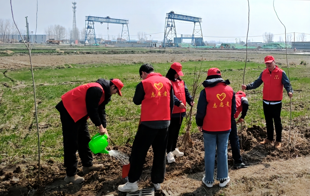 合周高速4標(biāo)東淝河大橋項(xiàng)目組織青年員工積極開(kāi)展義務(wù)植樹(shù)活動(dòng),在項(xiàng)目周邊揮鍬鏟土、扶樹(shù)正苗、培土澆水,共同美化屬地環(huán)境。