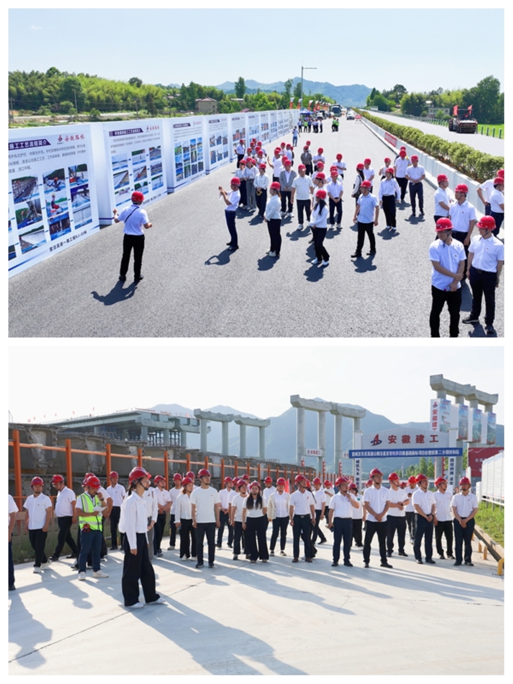 在安徽路橋宣涇高速一期03標項目,青年們參觀了項目駐地及黨群活動場所,在施工現(xiàn)場觀摩了解了瀝青無人攤壓技術和新澤西護欄預制安裝等施工工藝。在安徽水利涇青高速二分部,青年們先后參觀了青弋江特大橋安全文明施工以及場站和安全體驗館標準化建設情況。