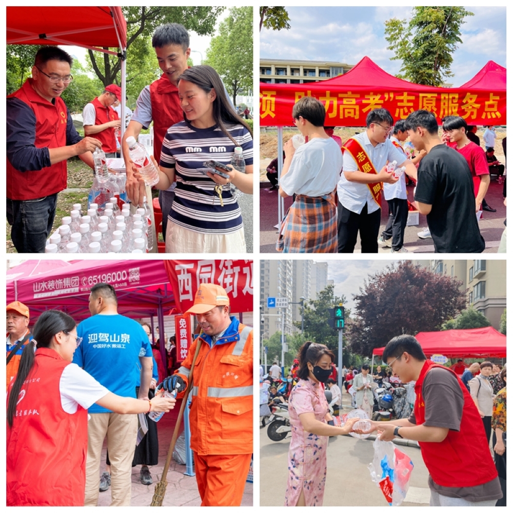 在考點(diǎn)外,志愿者們?cè)O(shè)立了“愛心助考站”,將助考遮陽(yáng)棚變成“能量站”,為考生及家長(zhǎng)搭建遮陽(yáng)避雨的休息區(qū),提供應(yīng)急藥品、防暑降溫用品、文具補(bǔ)給等貼心服務(wù)。隨時(shí)為莘莘學(xué)子、陪考家長(zhǎng)、工作人員和民警同志“加油”“打氣”。