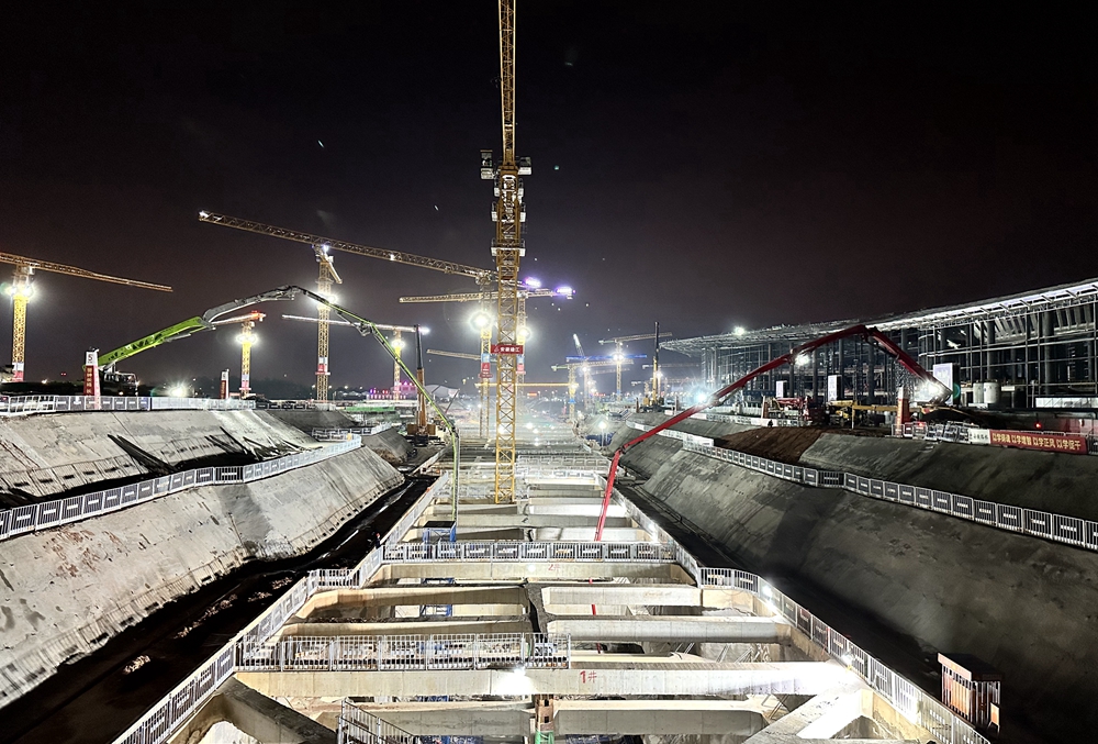 【路橋“競(jìng)”行時(shí)】合肥新橋國(guó)際機(jī)場(chǎng)綜合交通中心項(xiàng)目首塊軌頂風(fēng)道澆筑完成