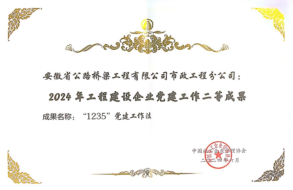 近日,中國施工企業(yè)管理協(xié)會公布2024年工程建設企業(yè)黨建工作優(yōu)秀成果名單,公司“‘1235’黨建工作法”、“‘盾構黨建’品牌案例”獲評二等成果。
