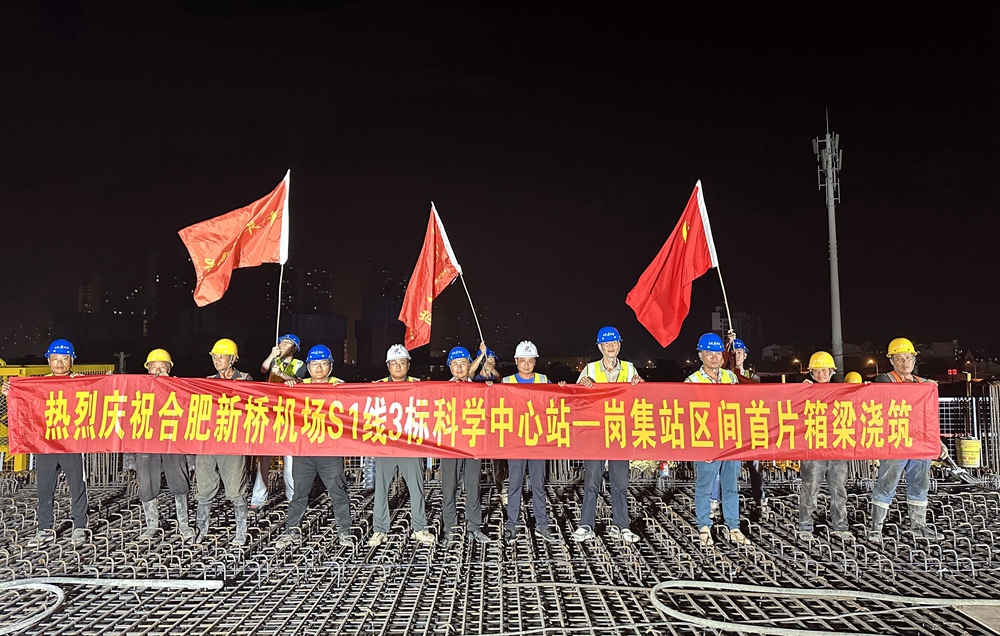 【路橋“競(jìng)”行時(shí)】合肥新橋機(jī)場(chǎng)S1線(xiàn)3標(biāo)科學(xué)中心站-崗集站區(qū)間首跨箱梁完成澆筑