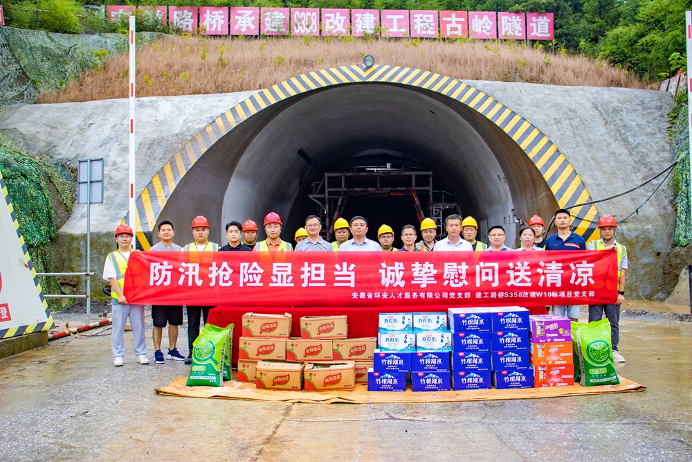 7月14日下午,共青團池州市委副書記、市青聯(lián)主席蔣業(yè)健帶隊到公司承建的S358改建W10標(biāo)古嶺隧道施工現(xiàn)場,開展“防汛搶險顯擔(dān)當(dāng) 誠摯慰問送清涼”活動,看望慰問奮戰(zhàn)在施工一線的建設(shè)者們,叮囑要科學(xué)安排施工和休息時間,并送來防暑降溫物資。