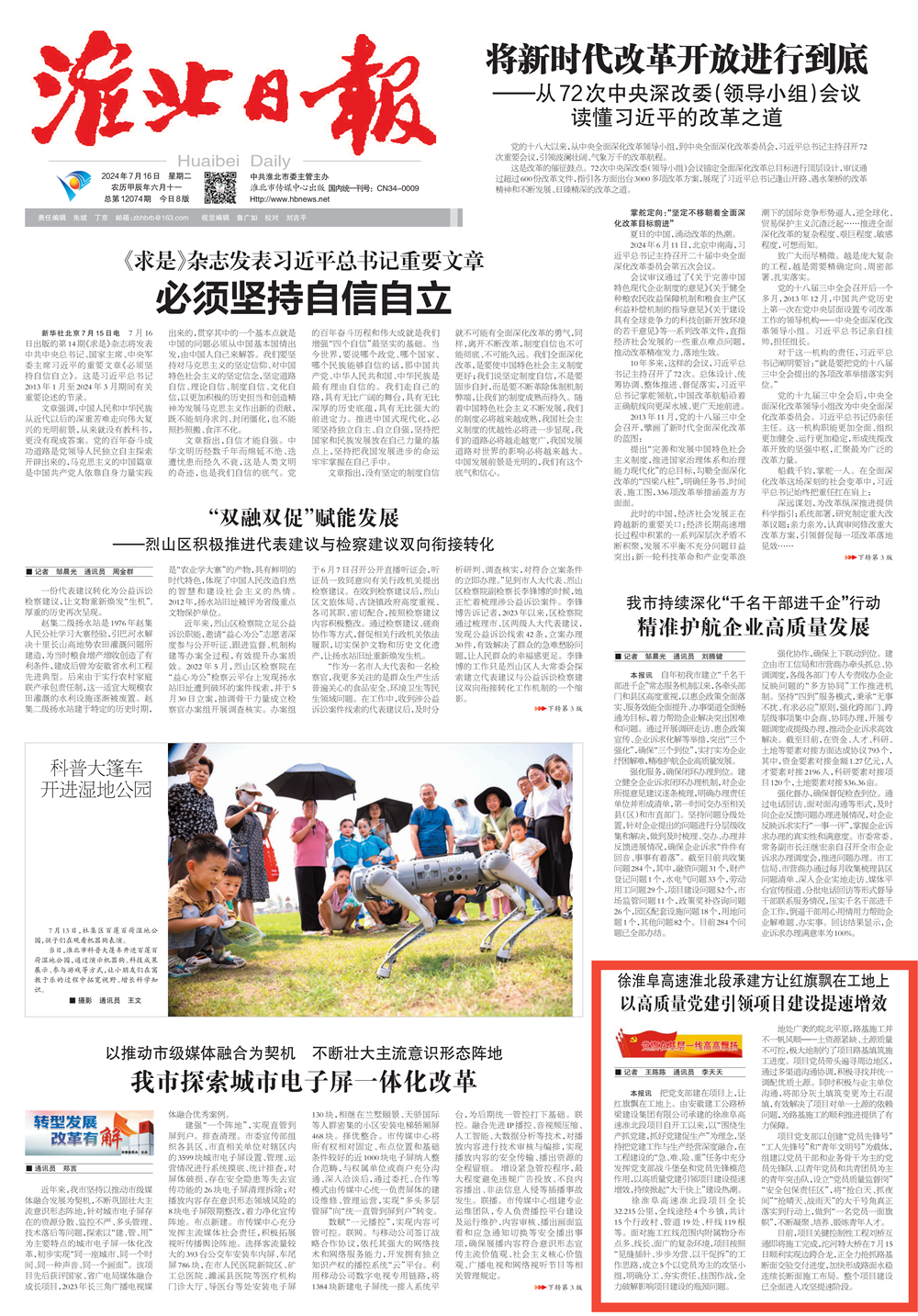 【名媒聚焦】淮北日報:徐淮阜高速淮北段讓紅旗飄在工地上 以高質(zhì)量黨建引領項目建設提速增效