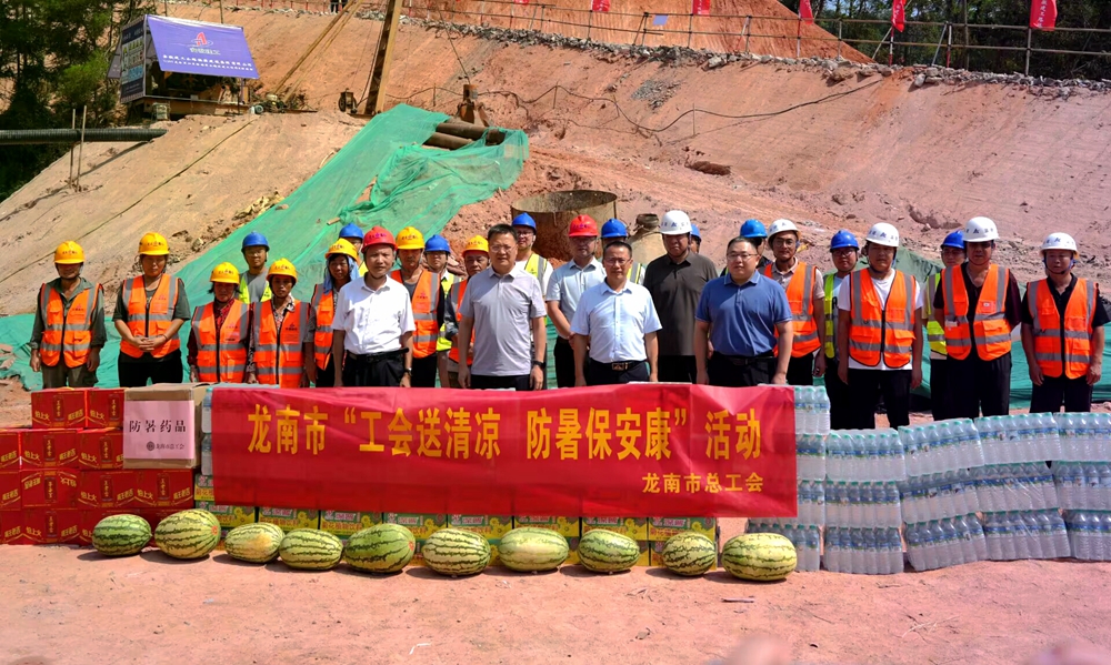 龍南市長彭江閩到G105龍南改建項目調(diào)研慰問 發(fā)布時間:2024年07月25日 來源:道路分公司 發(fā)布人:黨委組織部(人力資源部、黨委宣傳部) 作者:胡智勇 瀏覽:2165次 7月24日上午,龍南市委副書記、市長彭江閩到G105龍南改建項目實地調(diào)研項目建設進展情況,看望慰問一線建設者,并送來防暑降溫物資。 龍南市總工會常務副主席鐘洪濤參加調(diào)研慰問活動。