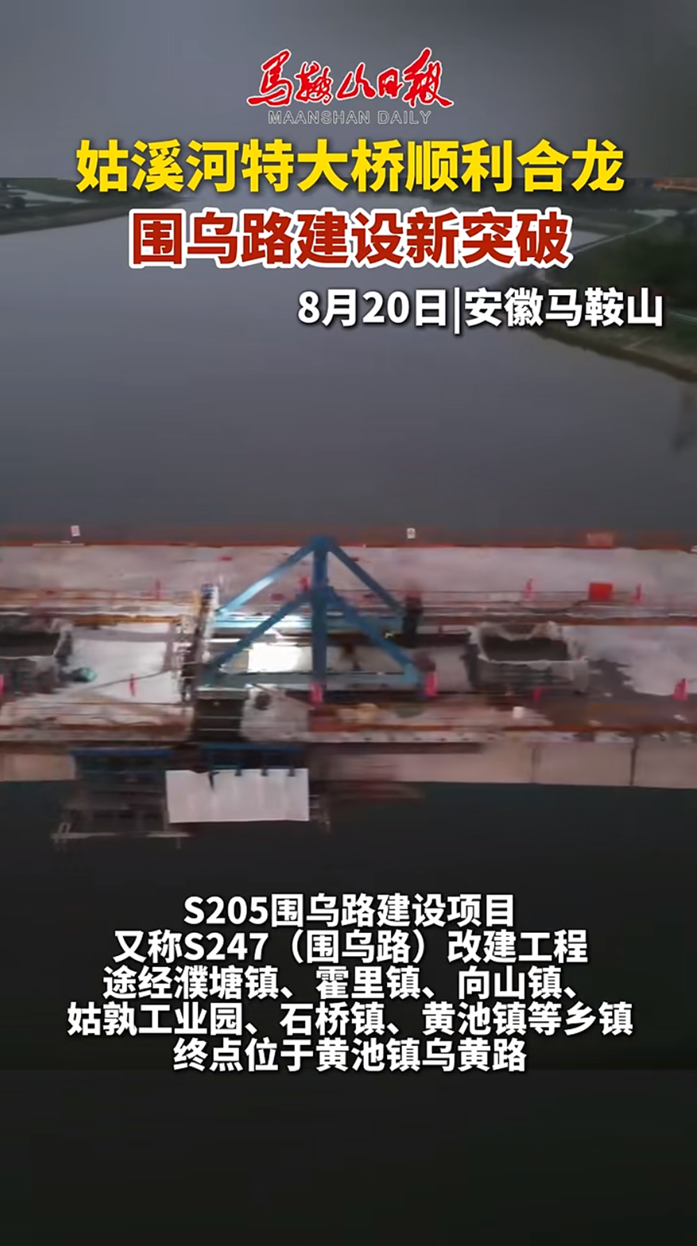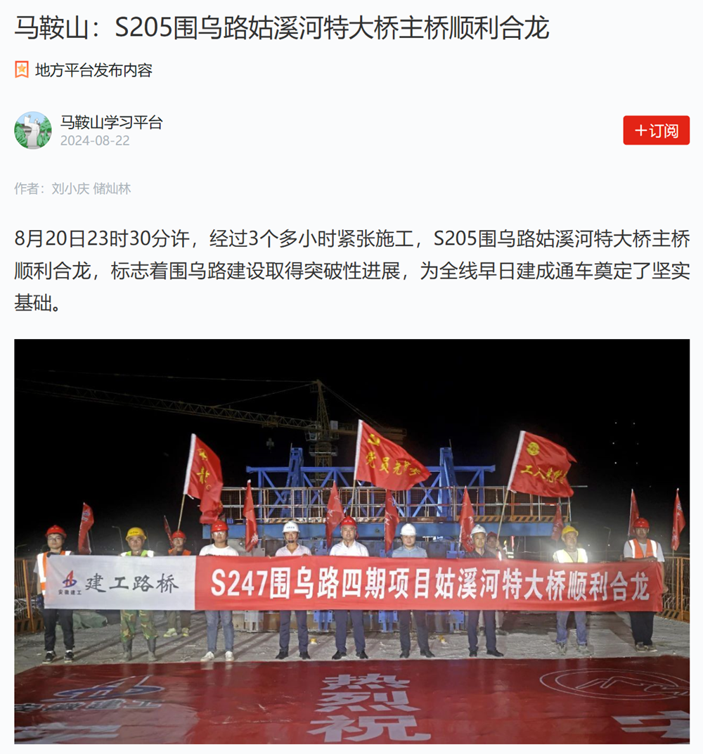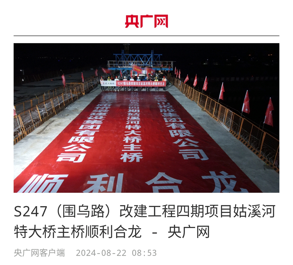 【名媒聚焦】央廣網(wǎng)、學(xué)習(xí)強(qiáng)國等主流媒體聚焦S247(圍烏路)改建工程四期姑溪河特大橋主橋順利合龍