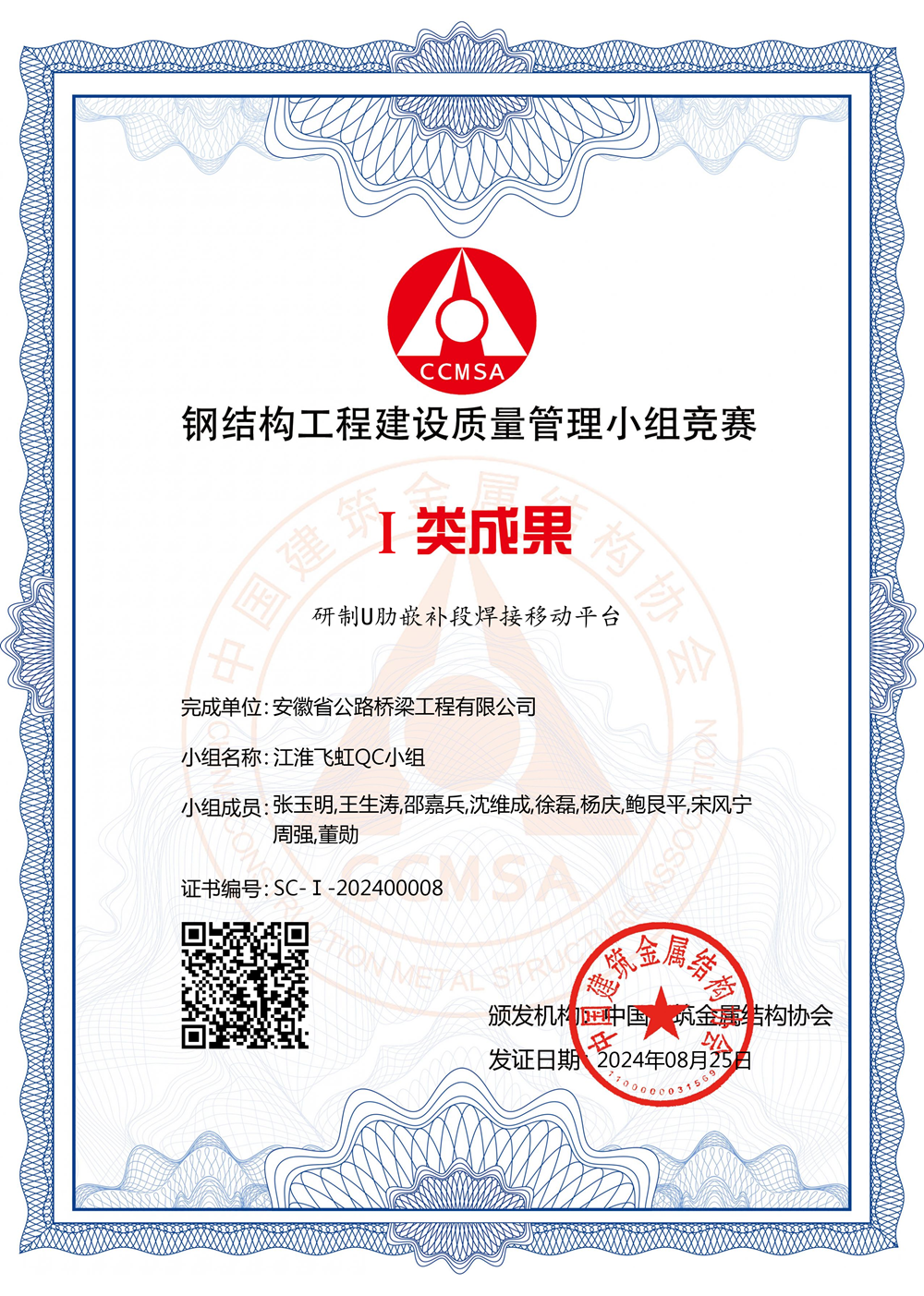 8月23日至25日,中國(guó)建筑金屬結(jié)構(gòu)協(xié)會(huì)在大同舉辦2024年鋼結(jié)構(gòu)工程建設(shè)質(zhì)量管理小組競(jìng)賽,公司《研制U肋嵌補(bǔ)段焊接移動(dòng)平臺(tái)》QC成果受到評(píng)審專家的一致好評(píng),榮獲Ⅰ類成果,同時(shí)作為優(yōu)秀成果案例在表彰大會(huì)上作交流。